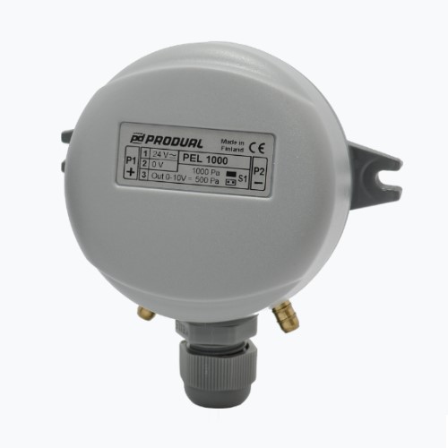 Cảm biến chênh áp PEL 1000 của hãng Produal - Finland là cảm biến áp suất áp suất để phát hiện áp suất và chênh lệch áp suất trong hệ thống xử lý không khí. Phạm vi đo thích hợp có thể được lựa chọn khi vận hành thử.