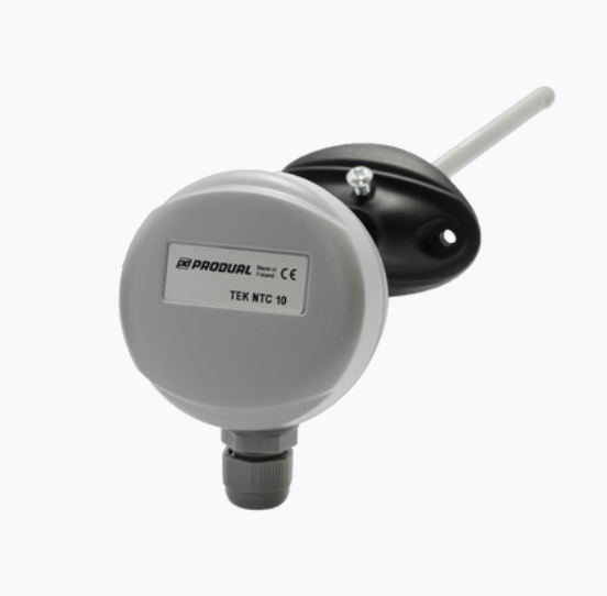 Cảm biến nhiệt độ ống gió NTC10K TEK NTC 10K của hãng PRODUAL - PHẦN LAN là cảm biến nhiệt độ chuyên dùng đo nhiệt độ ống thông gió tòa nhà và các ứng dụng công nghiệp nhẹ.