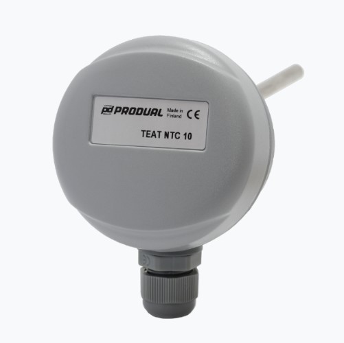 Cảm biến nhiệt độ nước TEAT NTC 10-100 của Hãng PRODUAL - Phần Lan là cảm biến đo nhiệt độ dùng gắn ống nước kiểu đầu cảm biến NTC10K có độ nhạy cao và độ chính xác cao. Cảm biến nhiệt độ ống nước TEAT NTC 10 cho phép đo nhiệt độ nước hệ Chiller, BMS, đo nhiệt độ ống nước cấp, đo nhiệt độ ống nước hồi, đo nhiệt độ ống nước nóng hoặc đo nhiệt độ môi trường gắn ống gió với phụ kiện flange đi kèm.